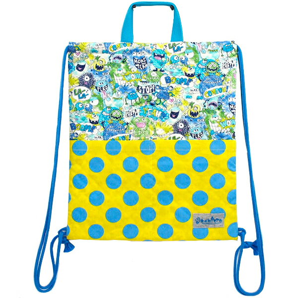 モンスターパーティ ブルー ナップサック(スタンダード)ハンドメイド namioto 安心 安全 日本製 ナップ リュック サブバッグ お着替え入れ 子供ナップサック お出かけ 丈夫 長持ち キルト 持ち手付きナップ 背負う 小学校 幼稚園 保育園 モンスター ブルー ドット