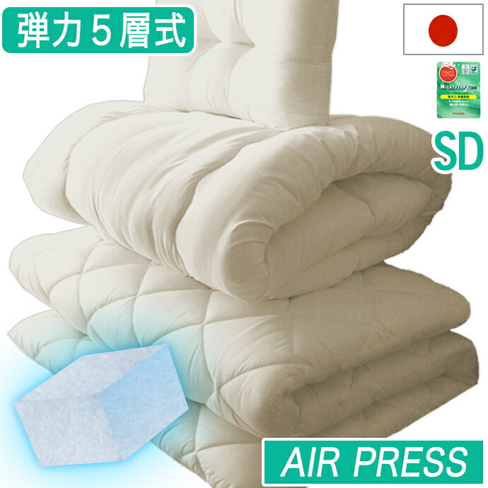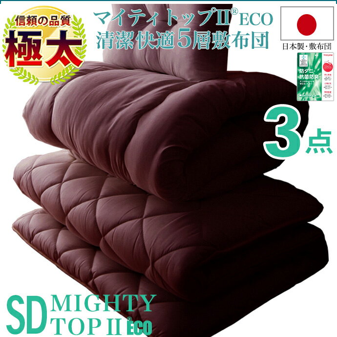 【日本製】大改良!! 極厚 布団セット セミダブル 防ダニ 抗菌防臭 布団3点セット 掛け敷き布団セット テイジンのマイティトップ(R)II ECO使用 プロファイルウレタン セミダブルロング 掛け布団 敷布団 枕極厚 圧縮袋 565610 849050 10000117